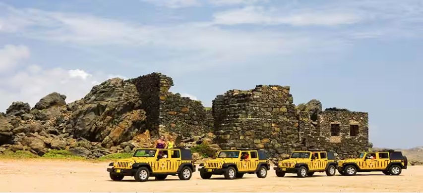 Incredibly white sands and cobalt blue seas make the small island of Aruba a popular destination. In the bustling freeport town of Oranjestad, sherbet-coloured Dutch colonial buildings, draped in bougainvillea, oleander and hibiscus are simply picturesque. Small, but informative museums relate the island's history.