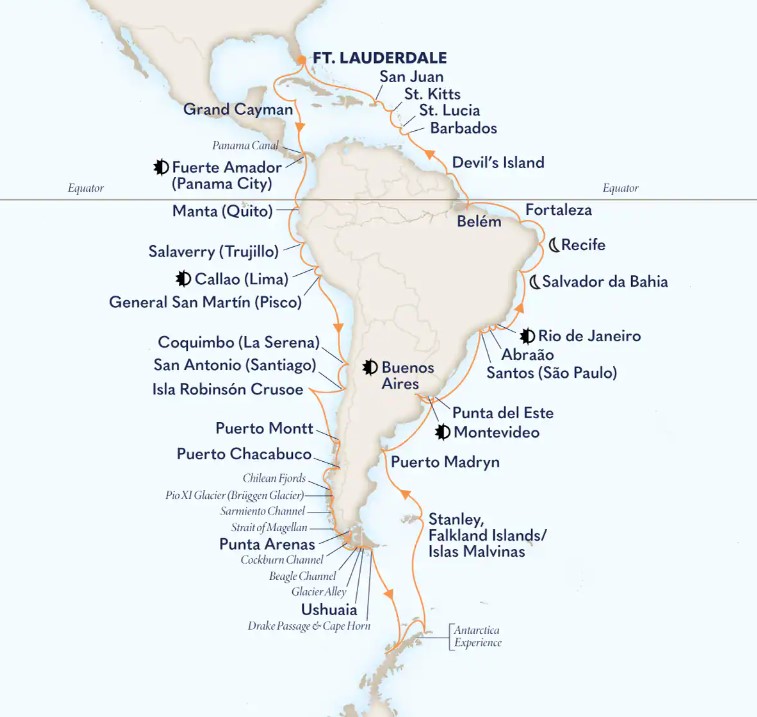 • CA $1,450 per person – Full Grand Voyages (129 day Roundtrip Fort Lauderdale)