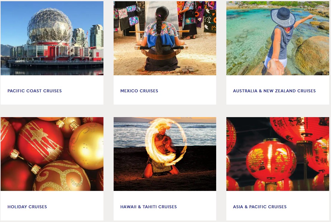 Specialty Dining is based on cruise duration and ship type. For 6- to 9-day cruises, guests will receive one night at Pinnacle Grill, Rudi’s Sel de Mer, Canaletto, or Tamarind. For ships without Rudi’s Sel de Mer or Tamarind, guests will receive one night at Pinnacle Grill or Canaletto. For 10- to 20-day cruises, guests will receive two nights: one night at Pinnacle Grill or Rudi’s Sel de Mer and one night at Canaletto or Tamarind. For ships without Tamarind, guests will receive two nights: one night at Pinnacle Grill and one night at Canaletto. For 21+ day cruises (excluding Grand Voyages),guests will receive three nights: one night at Pinnacle Grill, one night at Tamarind, and one night at Canaletto. For ships without Tamarind, guests will receive three nights: two nights at Pinnacle Grill and one night at Canaletto. Offer excludes Specialty Dining events in Pinnacle Grill or Tamarind such as Morimoto by Sea and Cellar Master Dinner. Reservations and dining times will be available to pre-reserve. Shore Excursion offer is based on cruise duration and is per person, not per stateroom. For Alaska cruisetours and 6- to 9-day cruises, eligible guests will receive US$100 Shore Excursion Credit to apply toward their Shore Excursion purchase(s). For 10- to 20-day cruises, eligible guests will receive US$200 Shore Excursion Credit to apply toward their Shore Excursion purchase(s). For 21+ day cruises (excluding Grand Voyages), eligible guests will receive US$300 Shore Excursion Credit to apply toward their Shore Excursion purchase(s). Shore Excursion Credit must be used pre-cruise when applied toward an Alaska Cruisetour